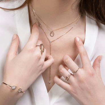 這款頸鏈以18K金精製,鑲嵌閃耀的日本Akoya珍珠,圓潤光澤如月光,象徵純潔與幸福。設計輕盈優雅,貼合頸部曲線,散發自然魅力。..